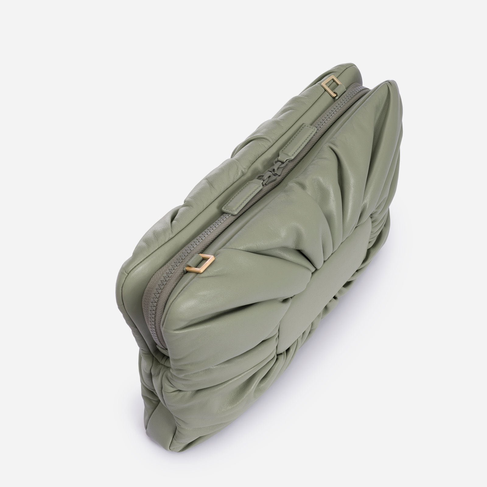 A streamlined approach to daily essentials: The Puff is a super soft and organic clutch designed to hold your laptop and all your office essentials. This lightly padded, soft-as-a-pillow carry-all comes in two sizes: 13?? and 16?? to fit most laptops.